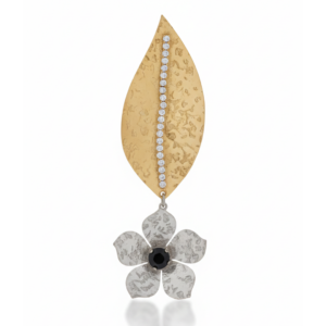 Dual Tone Leaf Statement Earrings – Gold & Silver with Crystal Edge