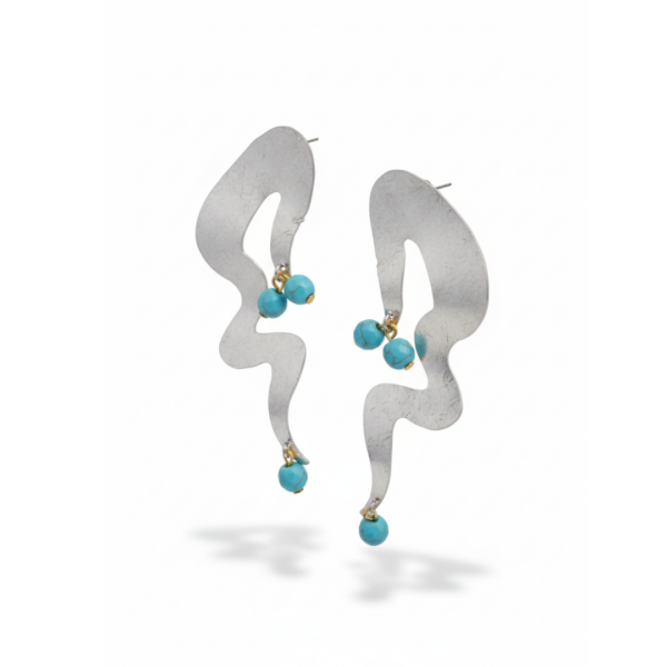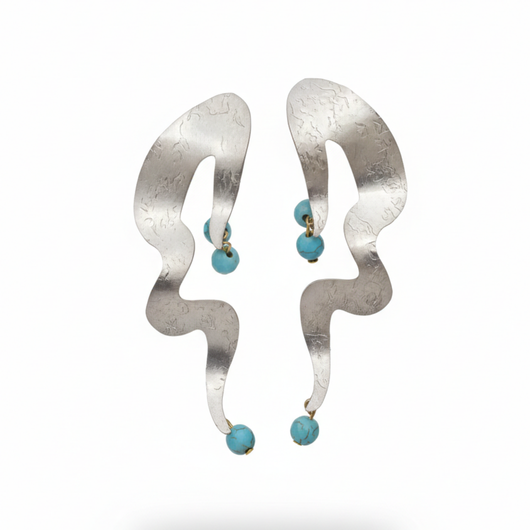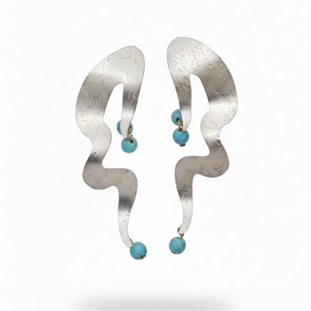 A striking blend of art and movement, these earrings showcase a fluid, sculptural silhouette inspired by organic forms. The asymmetrical curves create a bold visual statement, while the textured surface adds depth and a handcrafted feel.