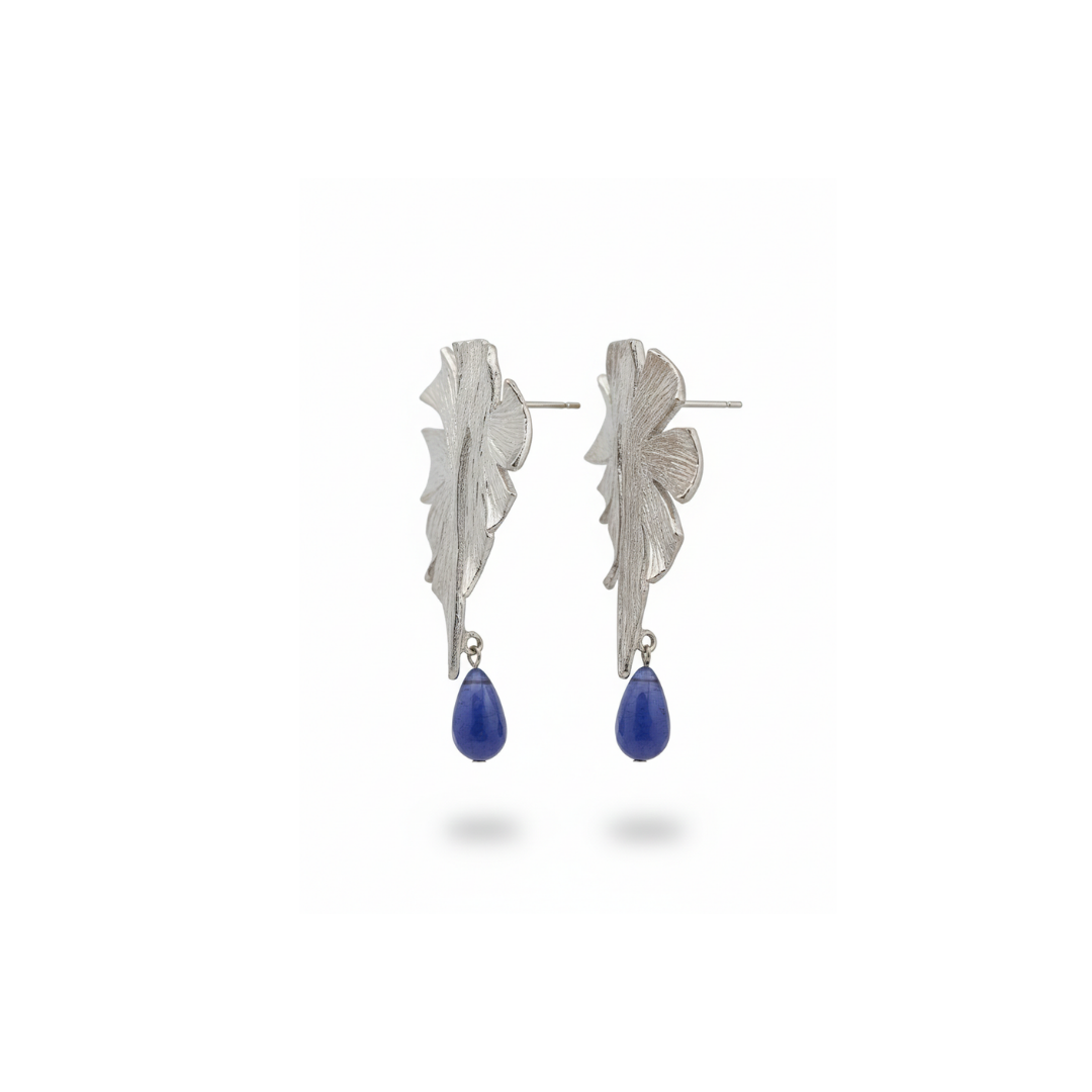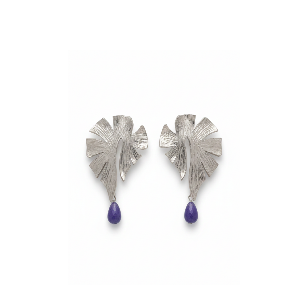 A bold artistic interpretation of nature, these earrings feature an abstract leaf-inspired silhouette with a finely textured surface that adds depth and character. The sculptural design creates a sense of movement, while the soft drop detail enhances elegance without overwhelming the look.