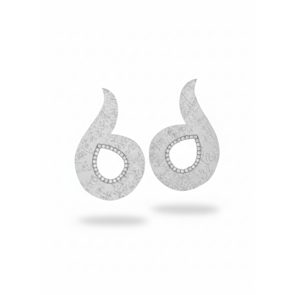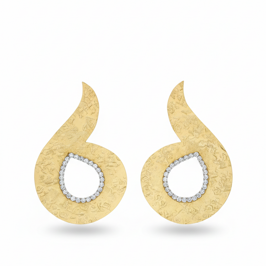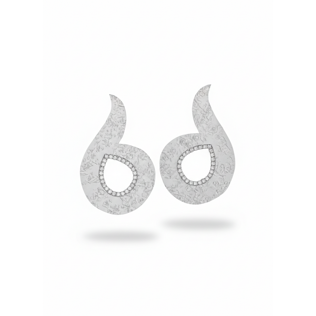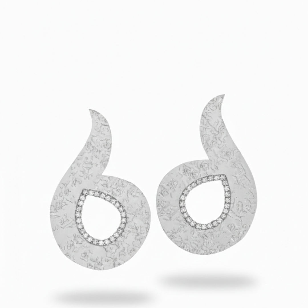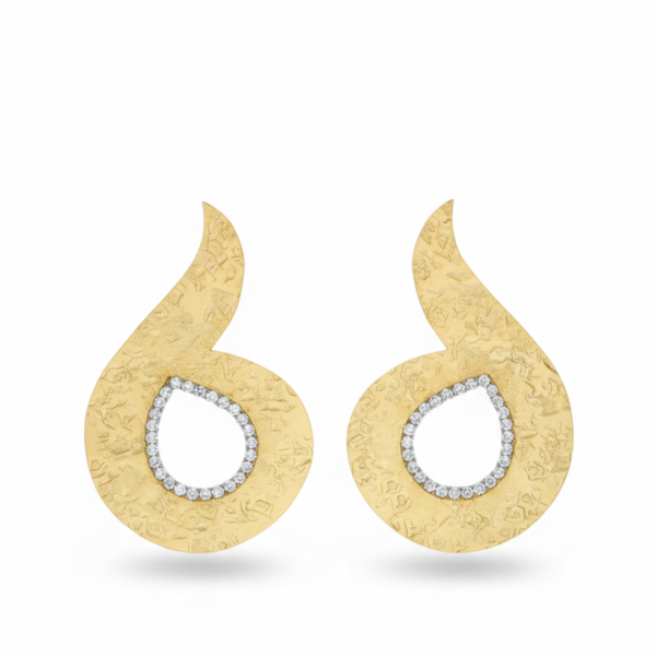 A contemporary interpretation of classic elegance, these earrings feature a fluid teardrop silhouette with a modern twist. The softly curved shape creates a sense of movement, while the textured surface adds depth and a handcrafted feel.