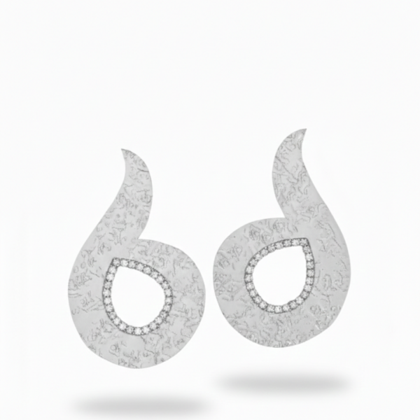 Abstract Teardrop Earrings – Textured Finish with Crystal Detail
