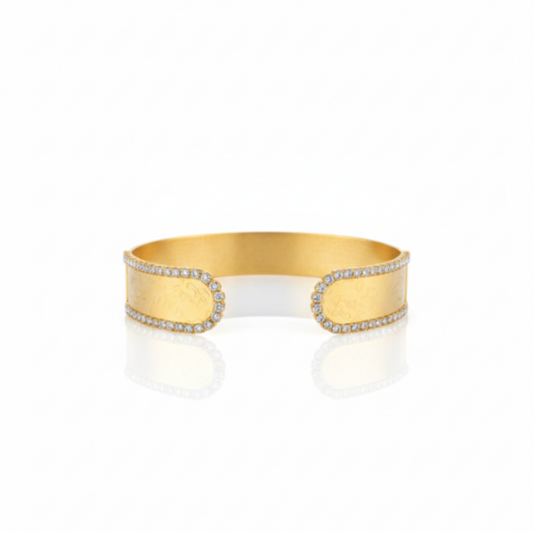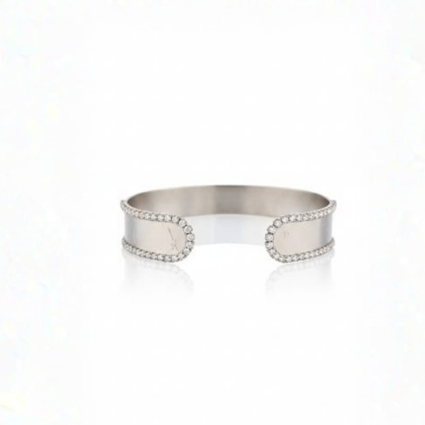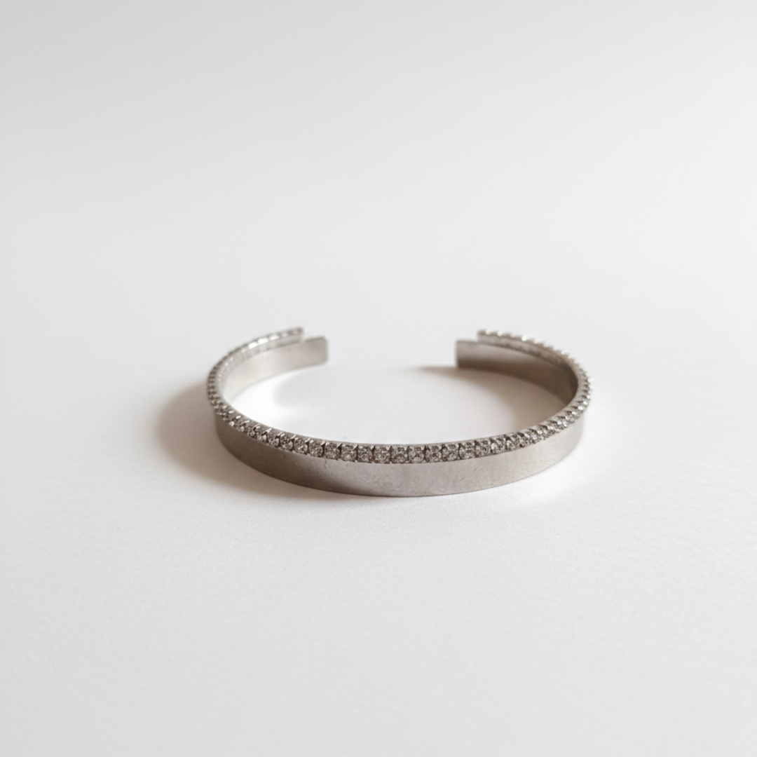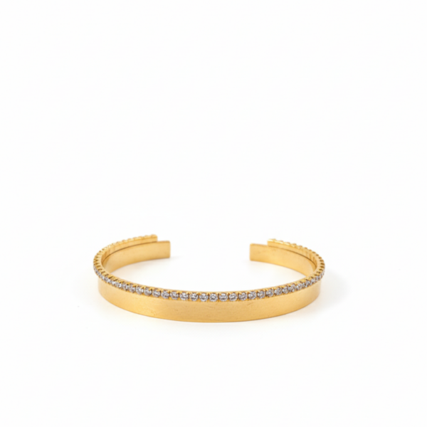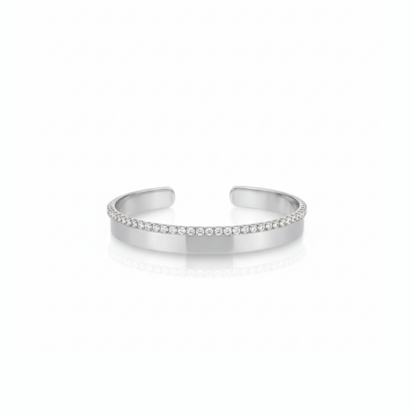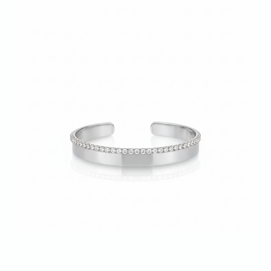 Clean, modern, and effortlessly elegant—this cuff bracelet features a sleek band design enhanced with a fine row of sparkling crystals along the edge. The minimalist structure is elevated by the subtle brilliance of the stones, creating a refined piece that complements any look.