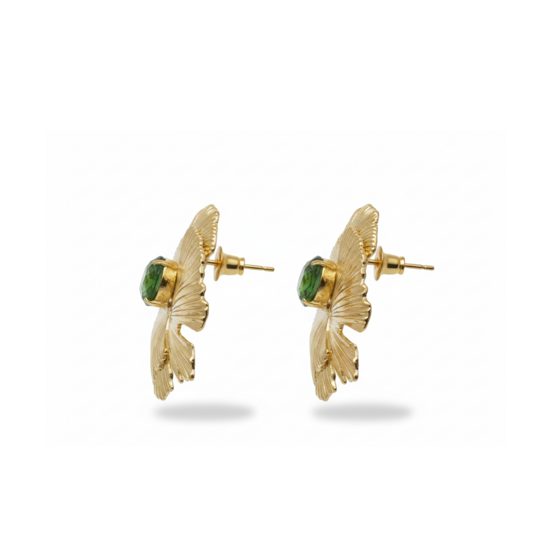 At the center, a faceted stone adds contrast and focus without overpowering the organic structure of the piece. The balance between texture and form gives these earrings a refined yet expressive identity.