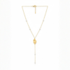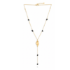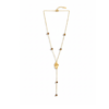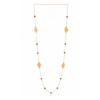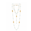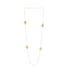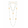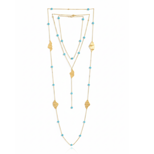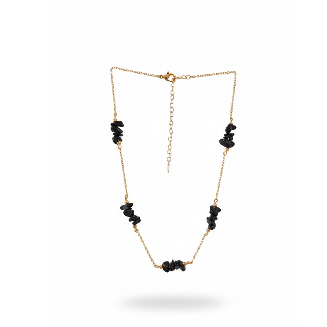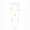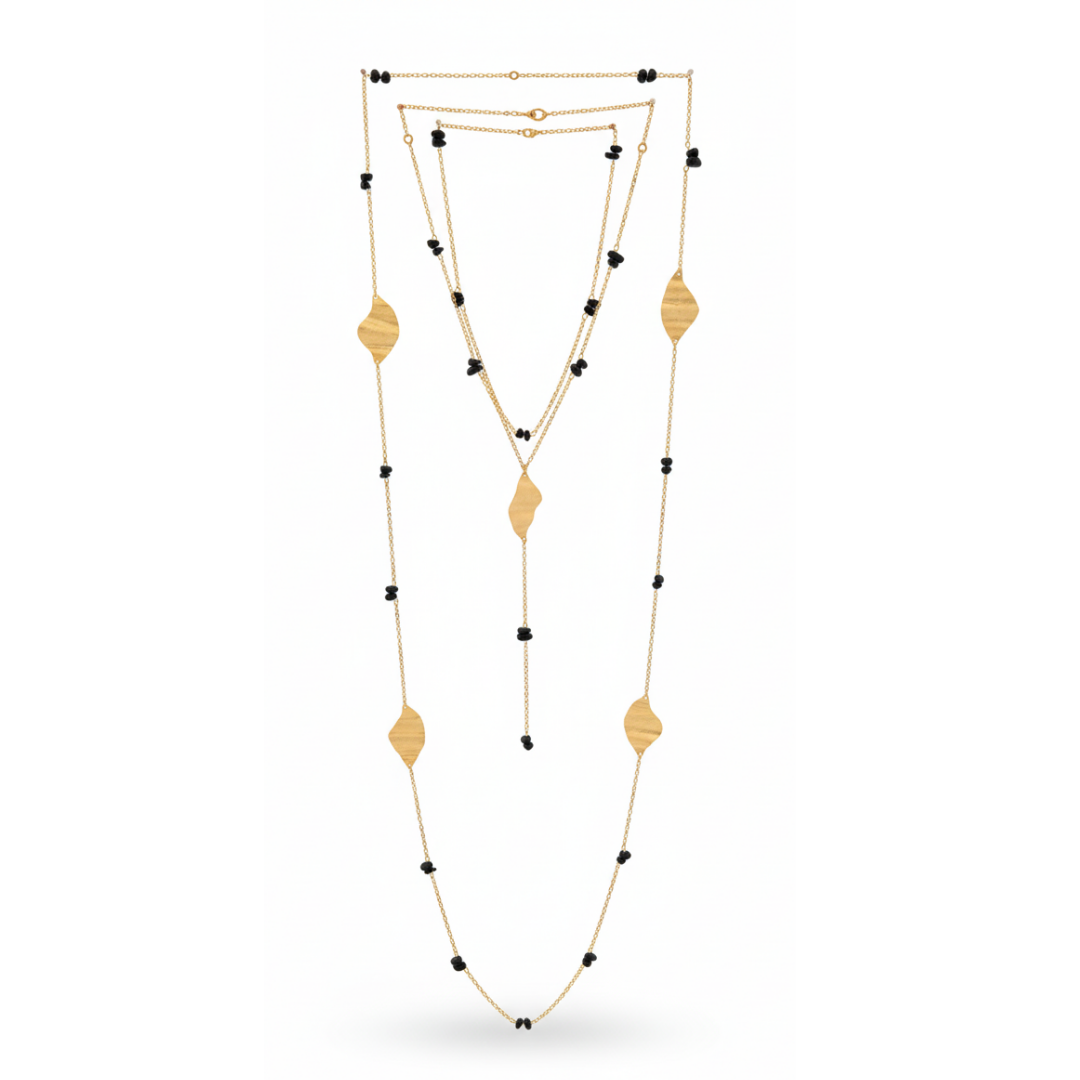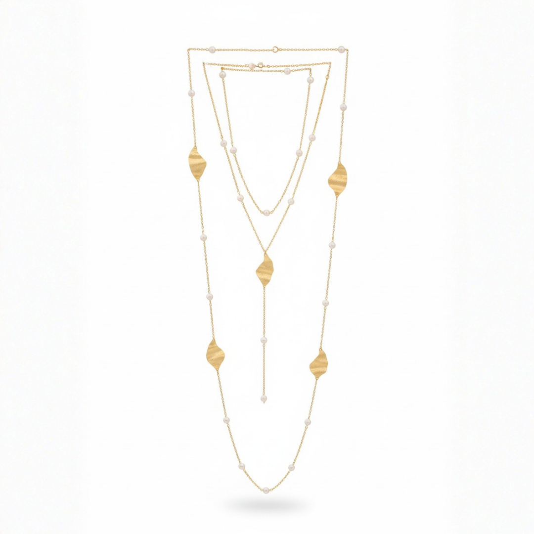 A refined triple layer choker necklace featuring delicate gold chains combined with organic-shaped elements arranged in a flowing layered composition. The design creates a graceful cascading effect, adding depth and movement to the overall look.