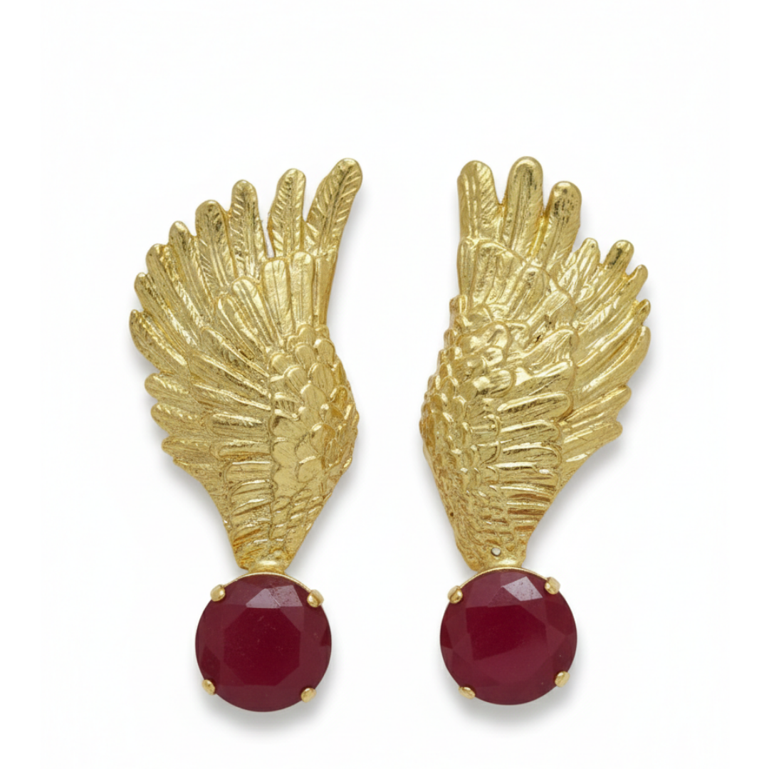 A powerful statement piece, these earrings feature a sculptural wing-inspired design that embodies movement, strength, and elegance. The intricate textured detailing mimics layered feathers, creating depth and a luxurious visual effect.